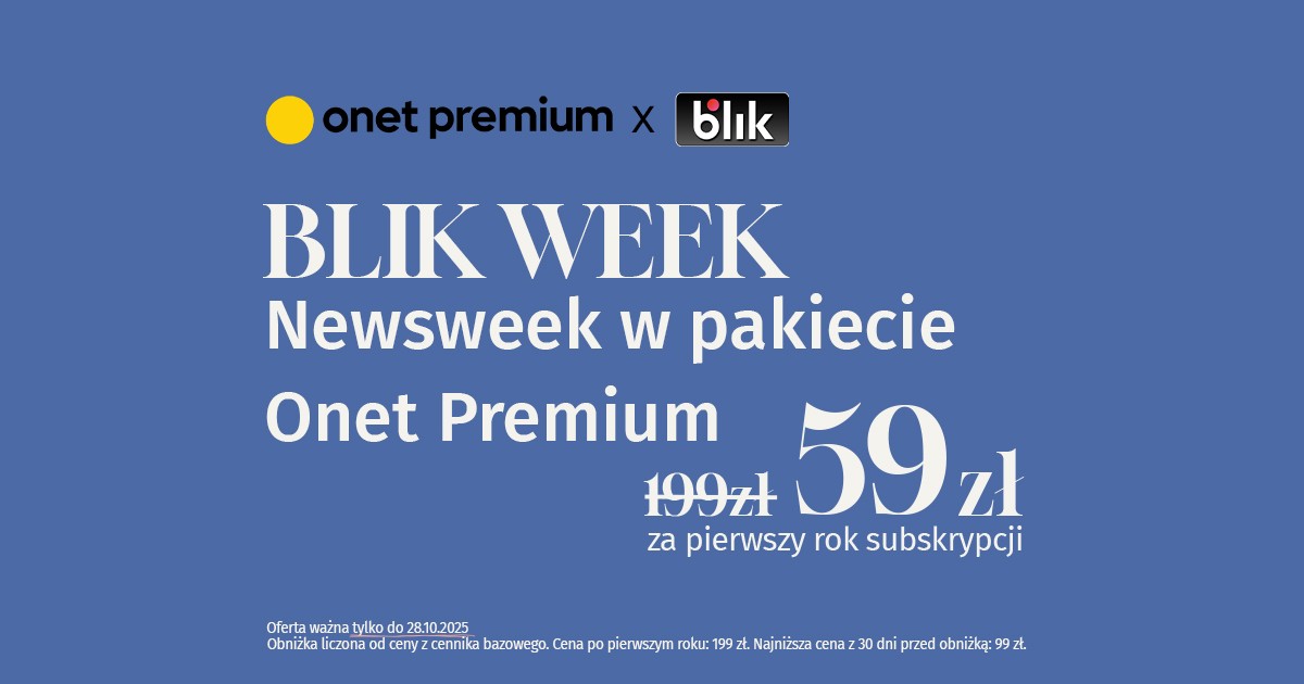 Pierwszy raz w historii Onetu Premium możesz zyskać dostęp do unikalnych treści „Newsweeka” i innych tytułów za pomocą płatności powtarzalnych BLIK. I do tego w świetnej cenie 59 zł zamiast 199 zł za pierwszy rok subskrypcji. Promocja trwa tylko do końca dnia 28 października.